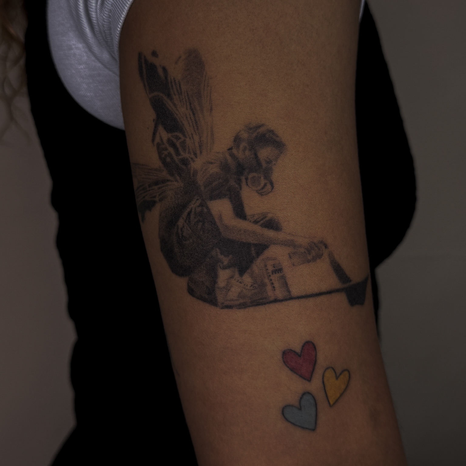 Demi heeft drie hartjes getatoeëerd in de primaire kleuren en vlak daarna nog een tattoo zonder kleur (die was niet #FORSCIENCE, maar #FORLINKINPARK).